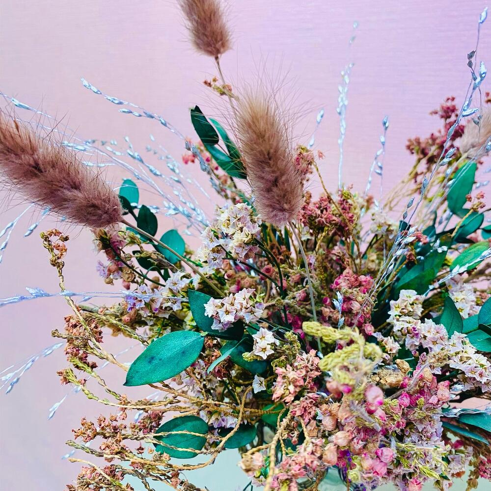 Эвкалипт – 3 шт.Ваза стекло – 1 шт.Лагурус – 5 шт.Оазис флористический – 1 шт.ветки декоративные – 25 шт.