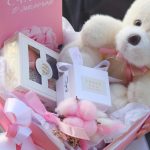 Подарочный набор с розовым медведем, сладостями и сухоцветами