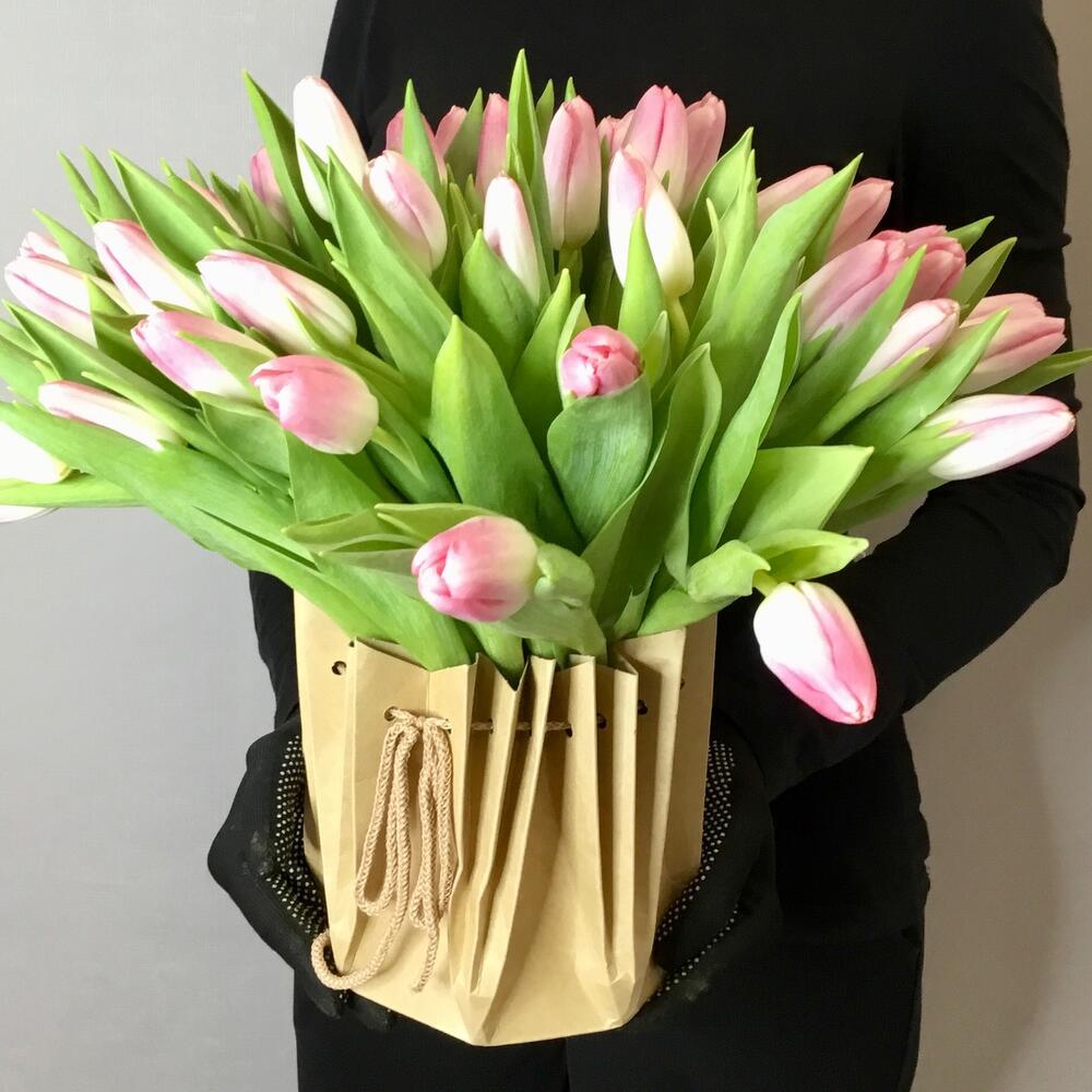 51 тюльпан в аквабоксе и в шляпной коробке