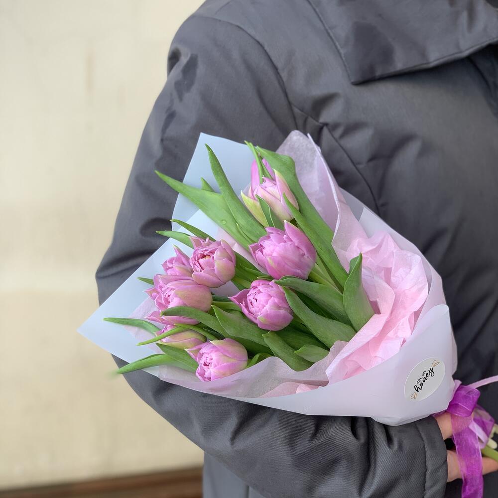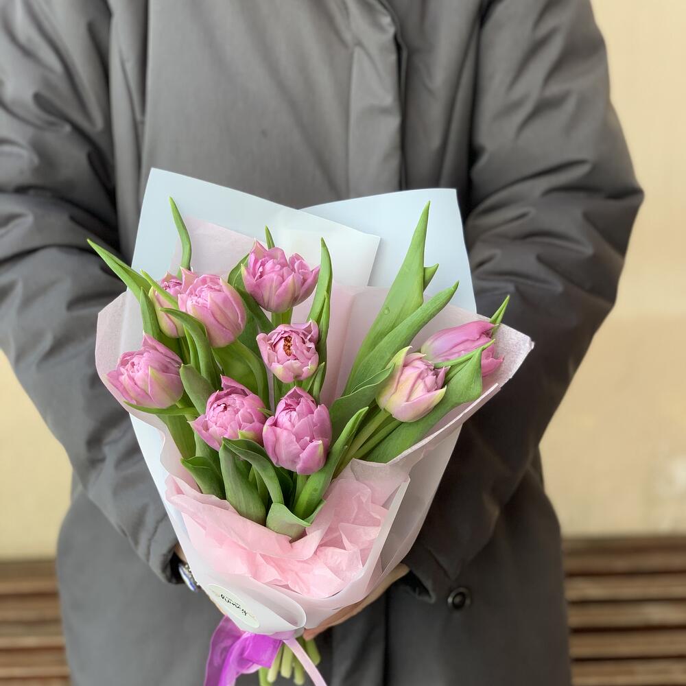 Нежный букет сиреневых пионовидных тюльпанов 9 шт / 1175 id