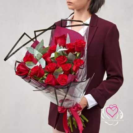 Красные розы в коробке 15шт