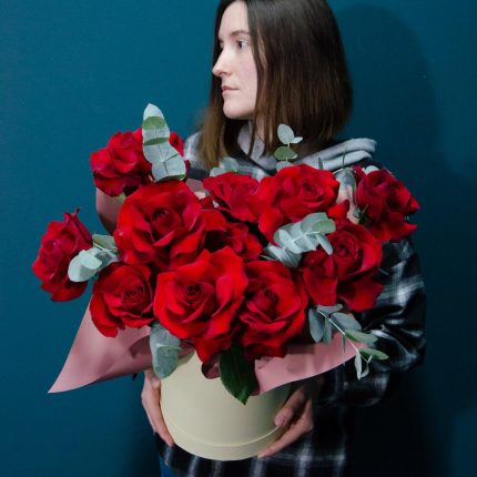 Коробка шляпная из 25 красных роз
