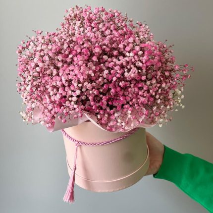 Цветы в коробке в красивом розовом цвете на день рождения, маме, сестре, подруге, без повода
