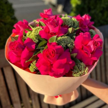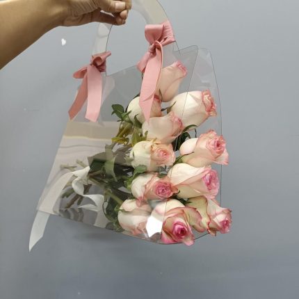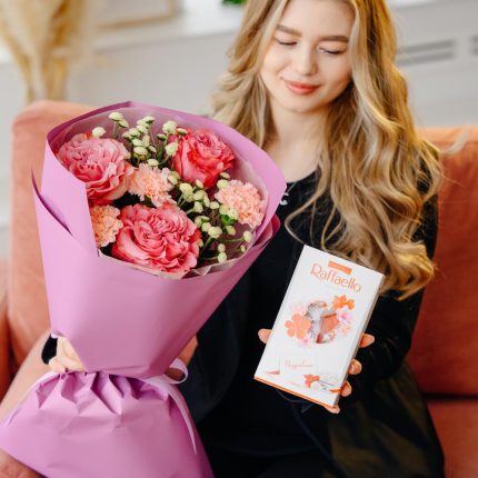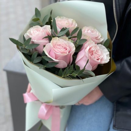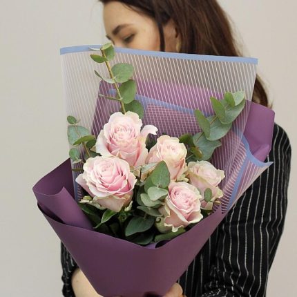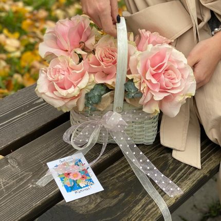 Корзинка Для Мамы из розовых роз и эвкалипта